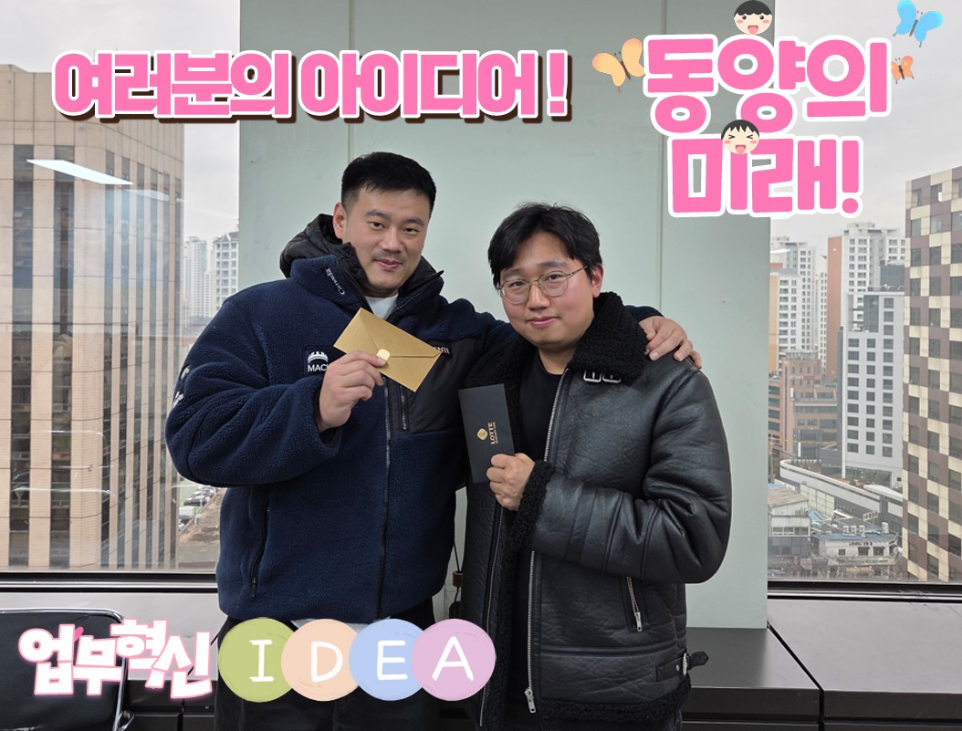 [업무 혁신 아이디어 우수직원 시상] 페이지 정보 작성자 관리자 댓글 0건 조회 483회 작성일 26-01-12 11:46 본문 업무실적 향상 및 효율 개선을 위해 직원 여러분의 혁신 아이디어를 공모하고, 실제로 채택된 아이디어에 대해 포상을 진행하였습니다. 참여해 주신 모든 분들께 감사드리며, 앞으로도 지속적인 혁신 아이디어 발굴과 업무 개선을 기대합니다! 목록 이전글2025-12 동양 MVP 26.01.13 다음글[인재양성 프로그램]당신의 성장을 응원합니다! 26.01.02